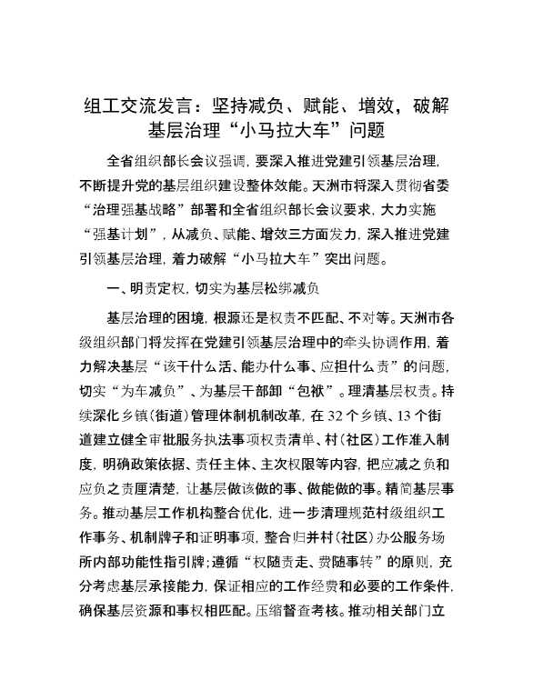 组工交流发言:坚持减负、赋能、增效,破解基层治理“小马拉大车”问题 2024-05-12 Word模板 113 购买前,请一定要先点击这里看看,欢迎持续关注,精彩模板每天推送 预览结束,本文件为word文档,一共4页,共1562字,请购买后,下载后查看 购买前,请一定要先点击这里看看,欢迎持续关注,精彩模板每天推送 资源下载下载价格29 RMBVIP免费升级VIP点击检测网盘有效后购买有任何充值和下载问题请加微信:xuexixuexi66 0 演讲发言