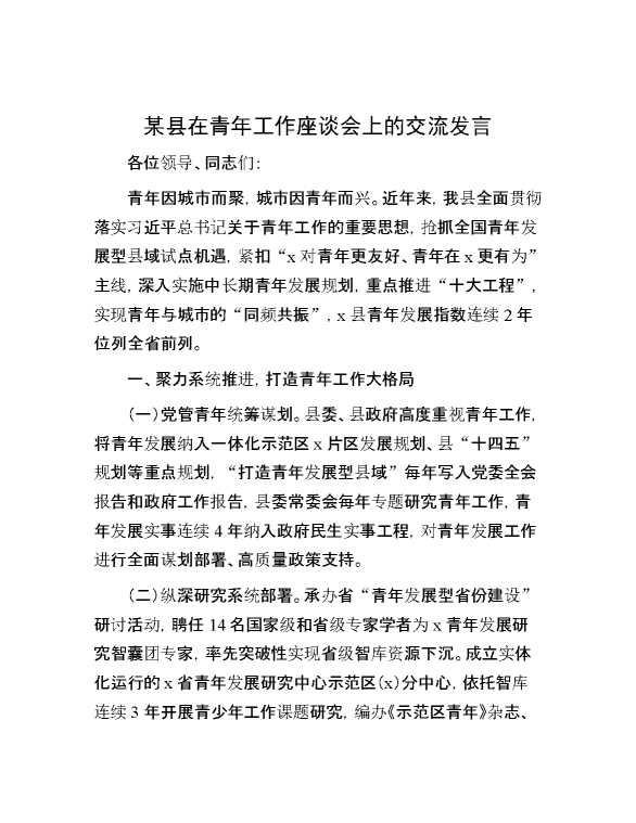 某县在青年工作座谈会上的交流发言 2024-05-12 Word模板 108 购买前,请一定要先点击这里看看,欢迎持续关注,精彩模板每天推送 预览结束,本文件为word文档,一共5页,共2052字,请购买后,下载后查看 购买前,请一定要先点击这里看看,欢迎持续关注,精彩模板每天推送 资源下载下载价格29 RMBVIP免费升级VIP点击检测网盘有效后购买有任何充值和下载问题请加微信:xuexixuexi66 0 演讲发言