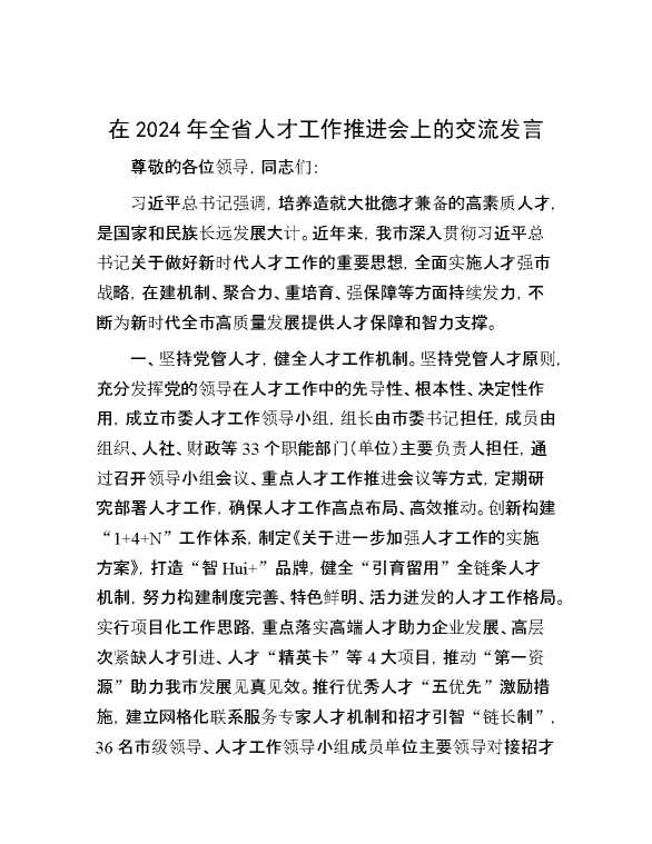 在2024年全省人才工作推进会上的交流发言 2024-05-12 Word模板 106 购买前,请一定要先点击这里看看,欢迎持续关注,精彩模板每天推送 预览结束,本文件为word文档,一共5页,共2086字,请购买后,下载后查看 购买前,请一定要先点击这里看看,欢迎持续关注,精彩模板每天推送 资源下载下载价格29 RMBVIP免费升级VIP点击检测网盘有效后购买有任何充值和下载问题请加微信:xuexixuexi66 0 演讲发言