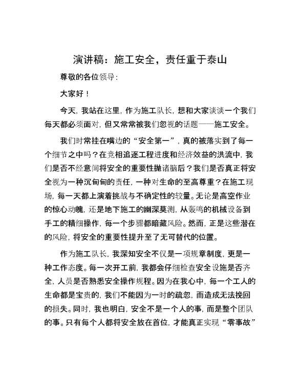 演讲稿:施工安全,责任重于泰山 2024-05-12 Word模板 109 购买前,请一定要先点击这里看看,欢迎持续关注,精彩模板每天推送 预览结束,本文件为word文档,一共2页,共743字,请购买后,下载后查看 购买前,请一定要先点击这里看看,欢迎持续关注,精彩模板每天推送 资源下载下载价格29 RMBVIP免费升级VIP点击检测网盘有效后购买有任何充值和下载问题请加微信:xuexixuexi66 0 演讲发言