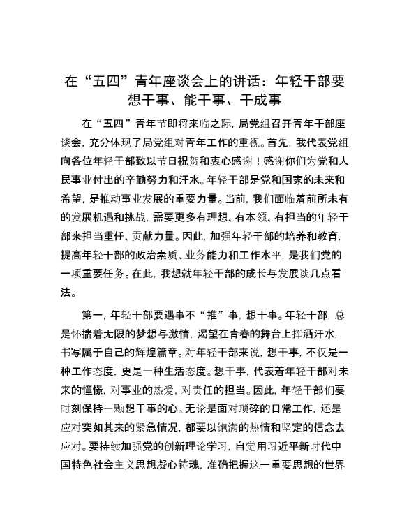 在“五四”青年座谈会上的讲话:年轻干部要想干事、能干事、干成事 2024-05-12 Word模板 111 购买前,请一定要先点击这里看看,欢迎持续关注,精彩模板每天推送 预览结束,本文件为word文档,一共3页,共1507字,请购买后,下载后查看 购买前,请一定要先点击这里看看,欢迎持续关注,精彩模板每天推送 资源下载下载价格29 RMBVIP免费升级VIP点击检测网盘有效后购买有任何充值和下载问题请加微信:xuexixuexi66 0 演讲发言
