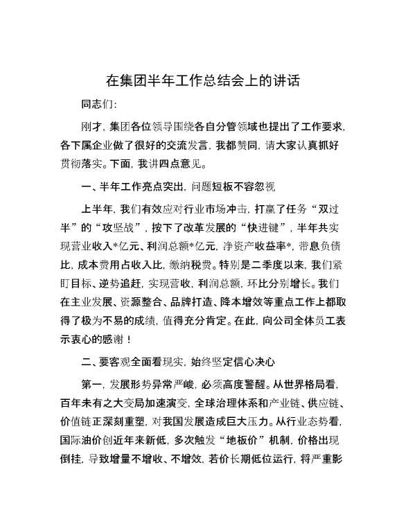 在集团半年工作总结会上的讲话 2024-05-12 Word模板 111 购买前,请一定要先点击这里看看,欢迎持续关注,精彩模板每天推送 预览结束,本文件为word文档,一共7页,共3403字,请购买后,下载后查看 购买前,请一定要先点击这里看看,欢迎持续关注,精彩模板每天推送 资源下载下载价格29 RMBVIP免费升级VIP点击检测网盘有效后购买有任何充值和下载问题请加微信:xuexixuexi66 0 演讲发言