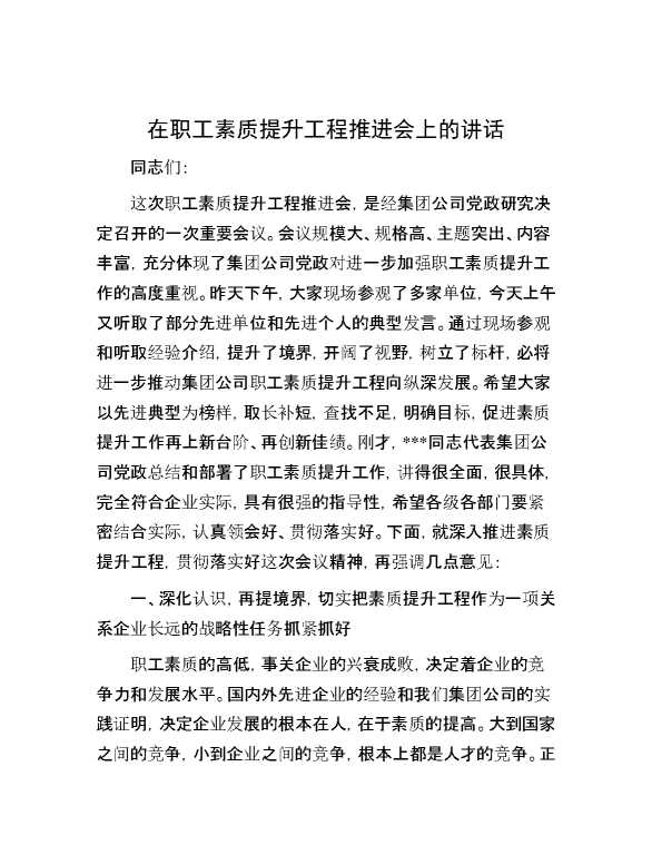 在职工素质提升工程推进会上的讲话 2024-05-12 Word模板 124 购买前,请一定要先点击这里看看,欢迎持续关注,精彩模板每天推送 预览结束,本文件为word文档,一共11页,共5720字,请购买后,下载后查看 购买前,请一定要先点击这里看看,欢迎持续关注,精彩模板每天推送 资源下载下载价格29 RMBVIP免费升级VIP点击检测网盘有效后购买有任何充值和下载问题请加微信:xuexixuexi66 0 演讲发言