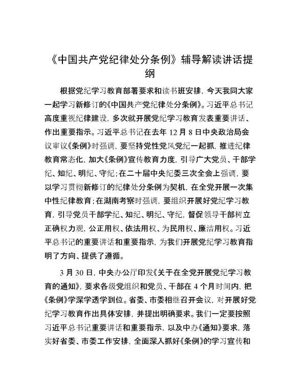《中国共产党纪律处分条例》辅导解读讲话提纲 2024-05-12 Word模板 114 购买前,请一定要先点击这里看看,欢迎持续关注,精彩模板每天推送 预览结束,本文件为word文档,一共17页,共8280字,请购买后,下载后查看 购买前,请一定要先点击这里看看,欢迎持续关注,精彩模板每天推送 资源下载下载价格29 RMBVIP免费升级VIP点击检测网盘有效后购买有任何充值和下载问题请加微信:xuexixuexi66 0 演讲发言