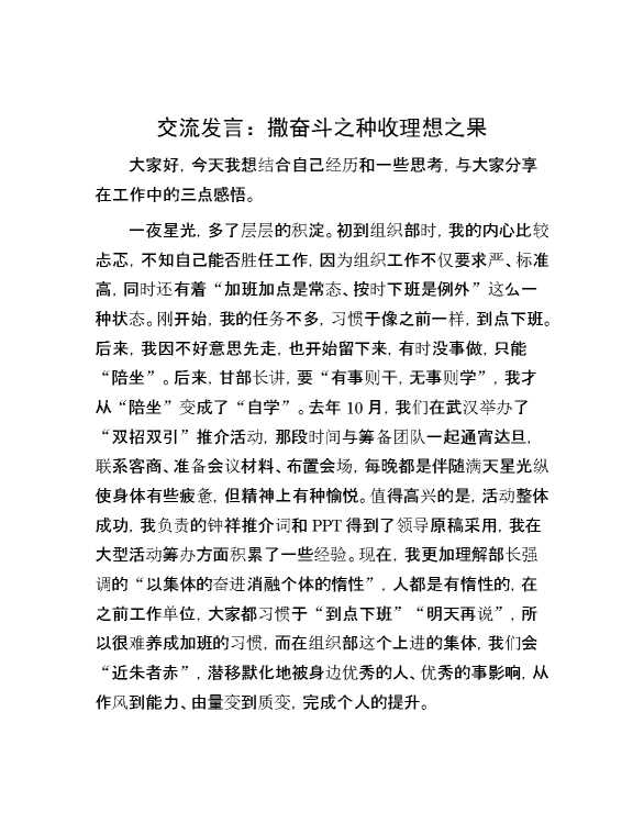 交流发言:撒奋斗之种 收理想之果 2024-05-12 Word模板 110 购买前,请一定要先点击这里看看,欢迎持续关注,精彩模板每天推送 预览结束,本文件为word文档,一共3页,共1254字,请购买后,下载后查看 购买前,请一定要先点击这里看看,欢迎持续关注,精彩模板每天推送 资源下载下载价格29 RMBVIP免费升级VIP点击检测网盘有效后购买有任何充值和下载问题请加微信:xuexixuexi66 0 演讲发言