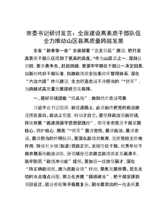 市委书记研讨发言:全面建设高素质干部队伍 全力推动山区县高质量跨越发展 2024-05-12 Word模板 118 购买前,请一定要先点击这里看看,欢迎持续关注,精彩模板每天推送 预览结束,本文件为word文档,一共3页,共1245字,请购买后,下载后查看 购买前,请一定要先点击这里看看,欢迎持续关注,精彩模板每天推送 资源下载下载价格29 RMBVIP免费升级VIP点击检测网盘有效后购买有任何充值和下载问题请加微信:xuexixuexi66 0 演讲发言