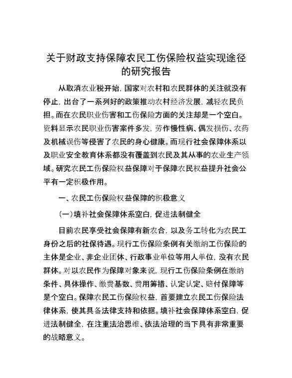 关于财政支持保障农民工伤保险权益实现途径的研究报告 2024-05-15 Word模板 138 购买前,请一定要先点击这里看看,欢迎持续关注,精彩模板每天推送 预览结束,本文件为word文档,一共6页,共2670字,请购买后,下载后查看 购买前,请一定要先点击这里看看,欢迎持续关注,精彩模板每天推送 资源下载下载价格29 RMBVIP免费升级VIP点击检测网盘有效后购买有任何充值和下载问题请加微信:xuexixuexi66 0 总结汇报