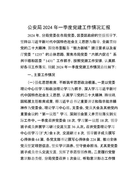 公安局2024年一季度党建工作情况汇报 2024-05-15 Word模板 105 购买前,请一定要先点击这里看看,欢迎持续关注,精彩模板每天推送 预览结束,本文件为word文档,一共9页,共4229字,请购买后,下载后查看 购买前,请一定要先点击这里看看,欢迎持续关注,精彩模板每天推送 资源下载下载价格29 RMBVIP免费升级VIP点击检测网盘有效后购买有任何充值和下载问题请加微信:xuexixuexi66 0 总结汇报