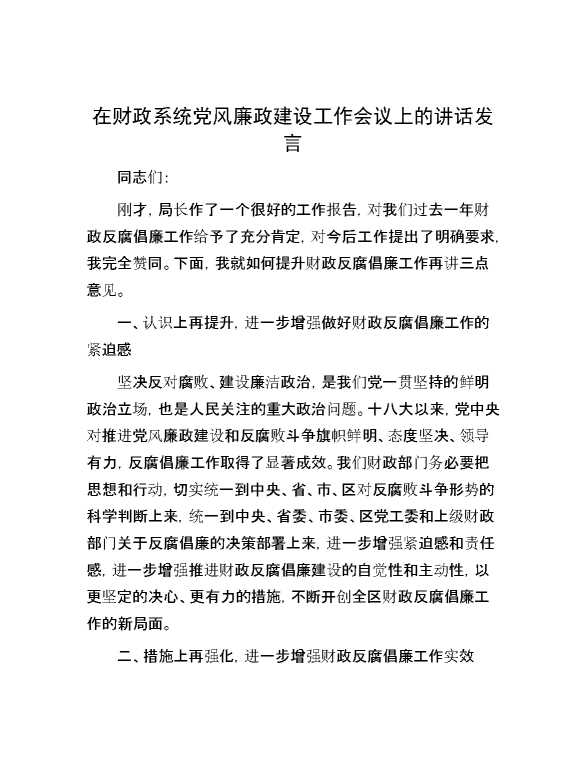 在财政系统党风廉政建设工作会议上的讲话发言 2024-05-19 Word模板 101 购买前,请一定要先点击这里看看,欢迎持续关注,精彩模板每天推送 预览结束,本文件为word文档,一共4页,共1794字,请购买后,下载后查看 购买前,请一定要先点击这里看看,欢迎持续关注,精彩模板每天推送 资源下载下载价格29 RMBVIP免费升级VIP点击检测网盘有效后购买有任何充值和下载问题请加微信:xuexixuexi66 0 演讲发言