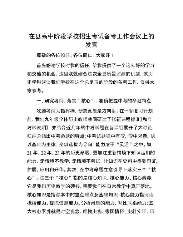 在县高中阶段学校招生考试备考工作会议上的发言 2024-05-19 Word模板 110 购买前,请一定要先点击这里看看,欢迎持续关注,精彩模板每天推送 预览结束,本文件为word文档,一共5页,共2136字,请购买后,下载后查看 购买前,请一定要先点击这里看看,欢迎持续关注,精彩模板每天推送 资源下载下载价格29 RMBVIP免费升级VIP点击检测网盘有效后购买有任何充值和下载问题请加微信:xuexixuexi66 0 演讲发言
