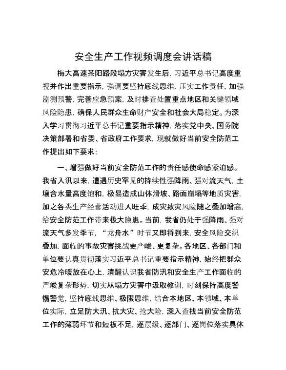 安全生产工作视频调度会讲话稿 2024-05-19 Word模板 106 购买前,请一定要先点击这里看看,欢迎持续关注,精彩模板每天推送 预览结束,本文件为word文档,一共5页,共2304字,请购买后,下载后查看 购买前,请一定要先点击这里看看,欢迎持续关注,精彩模板每天推送 资源下载下载价格29 RMBVIP免费升级VIP点击检测网盘有效后购买有任何充值和下载问题请加微信:xuexixuexi66 0 演讲发言