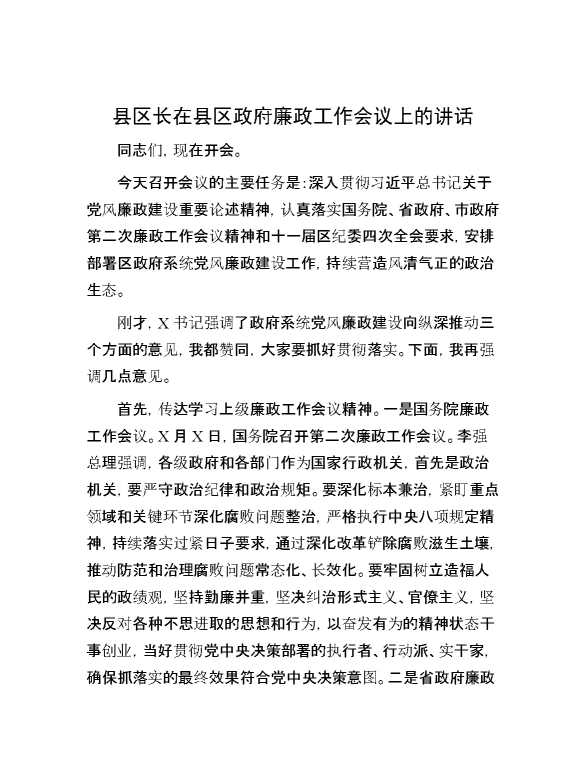 县区长在县区政府廉政工作会议上的讲话 2024-05-19 Word模板 108 购买前,请一定要先点击这里看看,欢迎持续关注,精彩模板每天推送 预览结束,本文件为word文档,一共9页,共4502字,请购买后,下载后查看 购买前,请一定要先点击这里看看,欢迎持续关注,精彩模板每天推送 资源下载下载价格29 RMBVIP免费升级VIP点击检测网盘有效后购买有任何充值和下载问题请加微信:xuexixuexi66 0 演讲发言