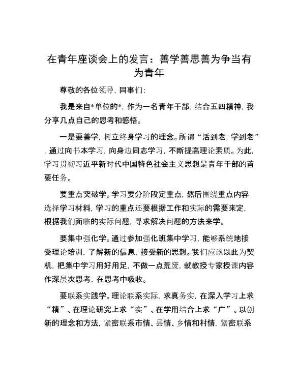 在青年座谈会上的发言:善学善思善为 争当有为青年 2024-05-19 Word模板 107 购买前,请一定要先点击这里看看,欢迎持续关注,精彩模板每天推送 预览结束,本文件为word文档,一共6页,共2419字,请购买后,下载后查看 购买前,请一定要先点击这里看看,欢迎持续关注,精彩模板每天推送 资源下载下载价格29 RMBVIP免费升级VIP点击检测网盘有效后购买有任何充值和下载问题请加微信:xuexixuexi66 0 演讲发言