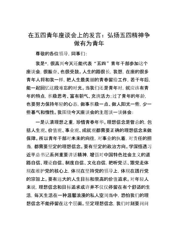 在五四青年座谈会上的发言:弘扬五四精神 争做有为青年 2024-05-19 Word模板 102 购买前,请一定要先点击这里看看,欢迎持续关注,精彩模板每天推送 预览结束,本文件为word文档,一共3页,共1361字,请购买后,下载后查看 购买前,请一定要先点击这里看看,欢迎持续关注,精彩模板每天推送 资源下载下载价格29 RMBVIP免费升级VIP点击检测网盘有效后购买有任何充值和下载问题请加微信:xuexixuexi66 0 演讲发言