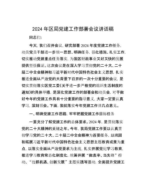 2024年区局党建工作部署会议讲话稿 2024-05-19 Word模板 107 购买前,请一定要先点击这里看看,欢迎持续关注,精彩模板每天推送 预览结束,本文件为word文档,一共5页,共2285字,请购买后,下载后查看 购买前,请一定要先点击这里看看,欢迎持续关注,精彩模板每天推送 资源下载下载价格29 RMBVIP免费升级VIP点击检测网盘有效后购买有任何充值和下载问题请加微信:xuexixuexi66 0 演讲发言