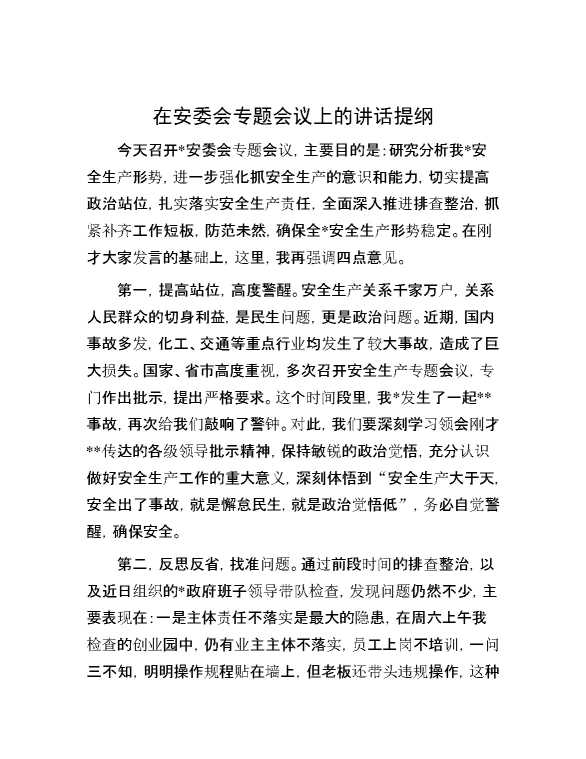 在安委会专题会议上的讲话提纲 2024-05-19 Word模板 106 购买前,请一定要先点击这里看看,欢迎持续关注,精彩模板每天推送 预览结束,本文件为word文档,一共6页,共2909字,请购买后,下载后查看 购买前,请一定要先点击这里看看,欢迎持续关注,精彩模板每天推送 资源下载下载价格29 RMBVIP免费升级VIP点击检测网盘有效后购买有任何充值和下载问题请加微信:xuexixuexi66 0 演讲发言