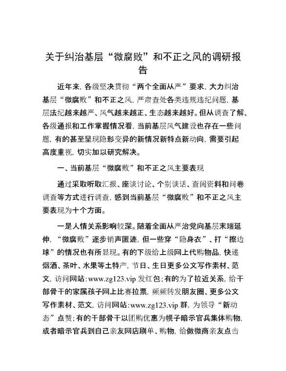 关于纠治基层“微腐败”和不正之风的调研报告 2024-05-23 Word模板 94 购买前,请一定要先点击这里看看,欢迎持续关注,精彩模板每天推送 预览结束,本文件为word文档,一共10页,共4418字,请购买后,下载后查看 购买前,请一定要先点击这里看看,欢迎持续关注,精彩模板每天推送 资源下载下载价格29 RMBVIP免费升级VIP点击检测网盘有效后购买有任何充值和下载问题请加微信:xuexixuexi66 0 总结汇报