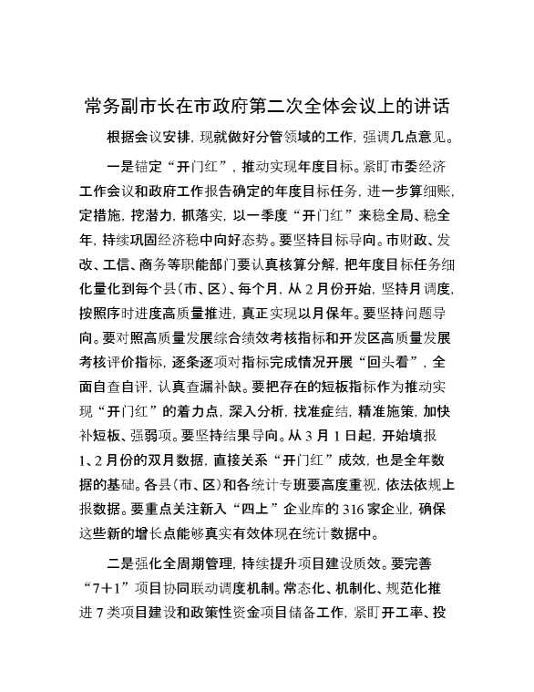常务副市长在市政府第二次全体会议上的讲话 2024-05-23 Word模板 92 购买前,请一定要先点击这里看看,欢迎持续关注,精彩模板每天推送 预览结束,本文件为word文档,一共8页,共4269字,请购买后,下载后查看 购买前,请一定要先点击这里看看,欢迎持续关注,精彩模板每天推送 资源下载下载价格29 RMBVIP免费升级VIP点击检测网盘有效后购买有任何充值和下载问题请加微信:xuexixuexi66 0 演讲发言