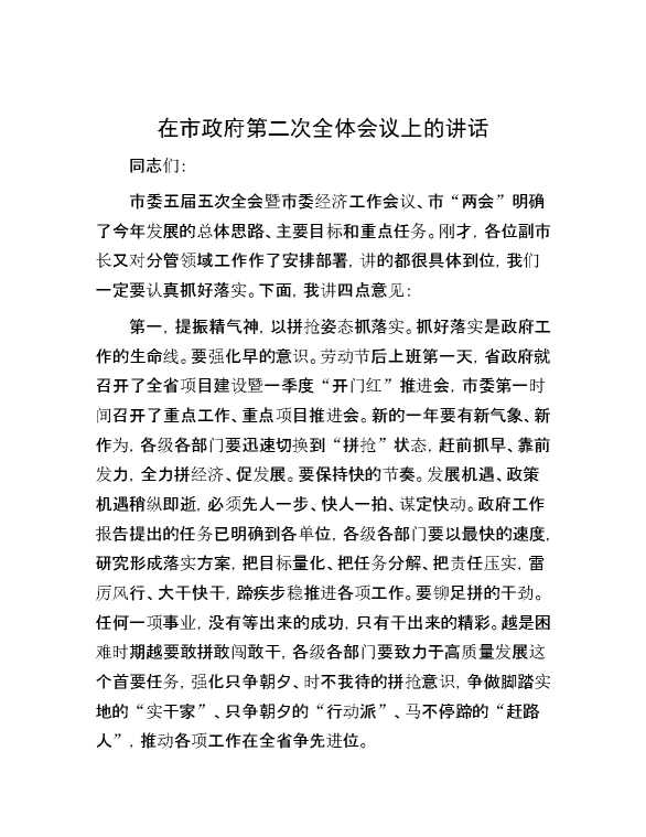 在市政府第二次全体会议上的讲话 2024-05-23 Word模板 111 购买前,请一定要先点击这里看看,欢迎持续关注,精彩模板每天推送 预览结束,本文件为word文档,一共7页,共3310字,请购买后,下载后查看 购买前,请一定要先点击这里看看,欢迎持续关注,精彩模板每天推送 资源下载下载价格29 RMBVIP免费升级VIP点击检测网盘有效后购买有任何充值和下载问题请加微信:xuexixuexi66 0 演讲发言