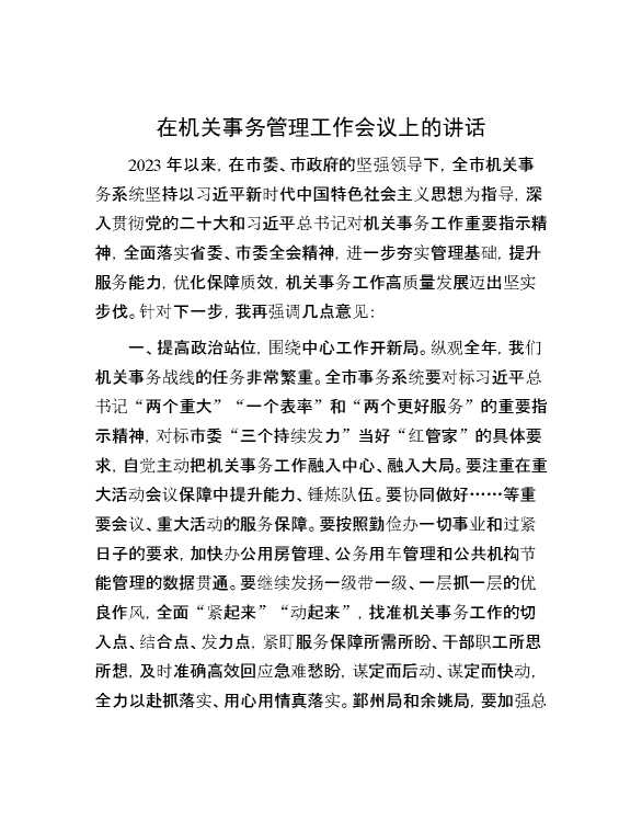 在机关事务管理工作会议上的讲话 2024-05-23 Word模板 113 购买前,请一定要先点击这里看看,欢迎持续关注,精彩模板每天推送 预览结束,本文件为word文档,一共6页,共2496字,请购买后,下载后查看 购买前,请一定要先点击这里看看,欢迎持续关注,精彩模板每天推送 资源下载下载价格29 RMBVIP免费升级VIP点击检测网盘有效后购买有任何充值和下载问题请加微信:xuexixuexi66 0 演讲发言