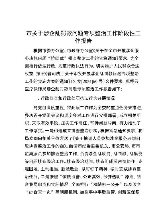市关于涉企乱罚款问题专项整治工作阶段性工作报告 2024-05-27 Word模板 132 购买前,请一定要先点击这里看看,欢迎持续关注,精彩模板每天推送 预览结束,本文件为word文档,一共4页,共1516字,请购买后,下载后查看 购买前,请一定要先点击这里看看,欢迎持续关注,精彩模板每天推送 资源下载下载价格29 RMBVIP免费升级VIP点击检测网盘有效后购买有任何充值和下载问题请加微信:xuexixuexi66 0 总结汇报
