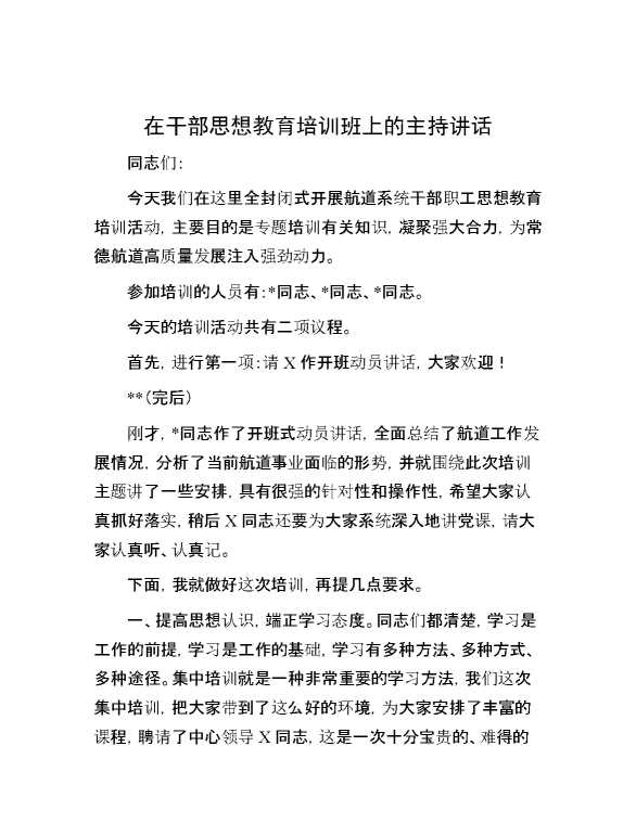 在干部思想教育培训班上的主持讲话 2024-05-27 Word模板 120 购买前,请一定要先点击这里看看,欢迎持续关注,精彩模板每天推送 预览结束,本文件为word文档,一共4页,共1450字,请购买后,下载后查看 购买前,请一定要先点击这里看看,欢迎持续关注,精彩模板每天推送 资源下载下载价格29 RMBVIP免费升级VIP点击检测网盘有效后购买有任何充值和下载问题请加微信:xuexixuexi66 0 演讲发言
