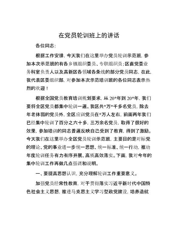 在党员轮训班上的讲话 2024-05-27 Word模板 110 购买前,请一定要先点击这里看看,欢迎持续关注,精彩模板每天推送 预览结束,本文件为word文档,一共8页,共3890字,请购买后,下载后查看 购买前,请一定要先点击这里看看,欢迎持续关注,精彩模板每天推送 资源下载下载价格29 RMBVIP免费升级VIP点击检测网盘有效后购买有任何充值和下载问题请加微信:xuexixuexi66 0 演讲发言