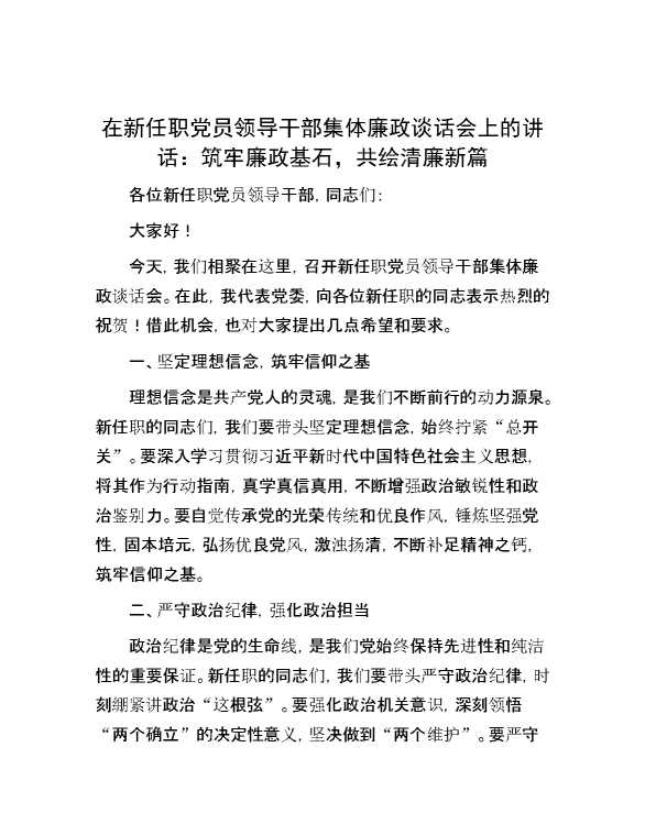在新任职党员领导干部集体廉政谈话会上的讲话:筑牢廉政基石,共绘清廉新篇 2024-05-27 Word模板 121 购买前,请一定要先点击这里看看,欢迎持续关注,精彩模板每天推送 预览结束,本文件为word文档,一共3页,共1284字,请购买后,下载后查看 购买前,请一定要先点击这里看看,欢迎持续关注,精彩模板每天推送 资源下载下载价格29 RMBVIP免费升级VIP点击检测网盘有效后购买有任何充值和下载问题请加微信:xuexixuexi66 0 演讲发言