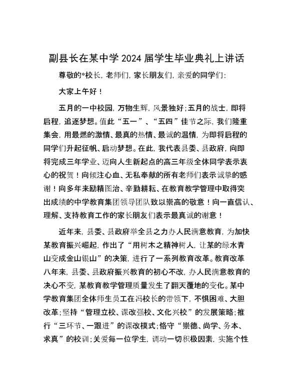 副县长在某中学2024届学生毕业典礼上讲话 2024-05-27 Word模板 115 购买前,请一定要先点击这里看看,欢迎持续关注,精彩模板每天推送 预览结束,本文件为word文档,一共4页,共1751字,请购买后,下载后查看 购买前,请一定要先点击这里看看,欢迎持续关注,精彩模板每天推送 资源下载下载价格29 RMBVIP免费升级VIP点击检测网盘有效后购买有任何充值和下载问题请加微信:xuexixuexi66 0 演讲发言