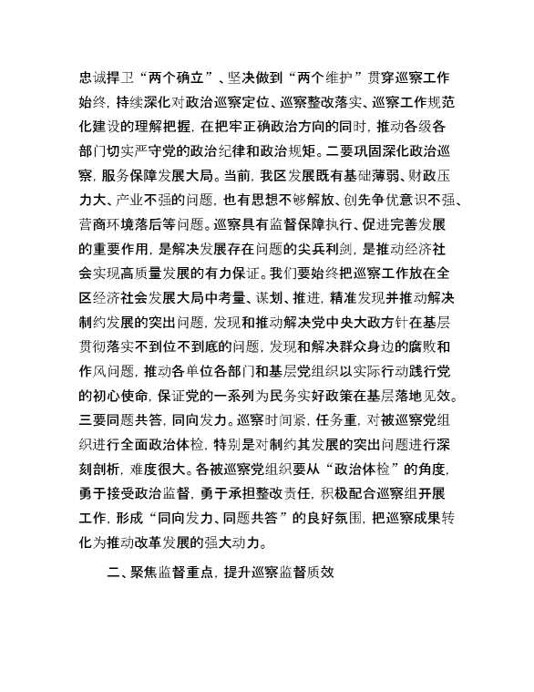 2024年巡察动员部署会讲话 2024-05-27 Word模板 113 购买前,请一定要先点击这里看看,欢迎持续关注,精彩模板每天推送 预览结束,本文件为word文档,一共5页,共2445字,请购买后,下载后查看 购买前,请一定要先点击这里看看,欢迎持续关注,精彩模板每天推送 资源下载下载价格29 RMBVIP免费升级VIP点击检测网盘有效后购买有任何充值和下载问题请加微信:xuexixuexi66 0 演讲发言