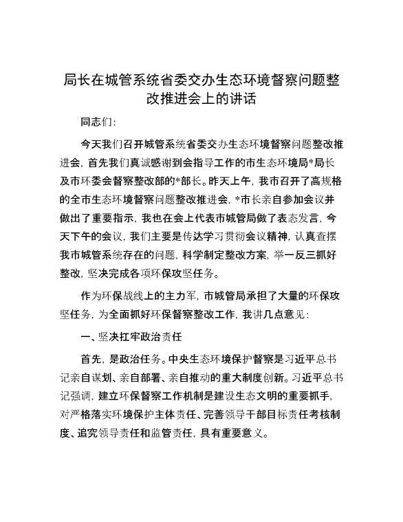 局长在城管系统省委交办生态环境督察问题整改推进会上的讲话 2024-05-27 Word模板 112 购买前,请一定要先点击这里看看,欢迎持续关注,精彩模板每天推送 预览结束,本文件为word文档,一共5页,共1737字,请购买后,下载后查看 购买前,请一定要先点击这里看看,欢迎持续关注,精彩模板每天推送 资源下载下载价格29 RMBVIP免费升级VIP点击检测网盘有效后购买有任何充值和下载问题请加微信:xuexixuexi66 0 演讲发言