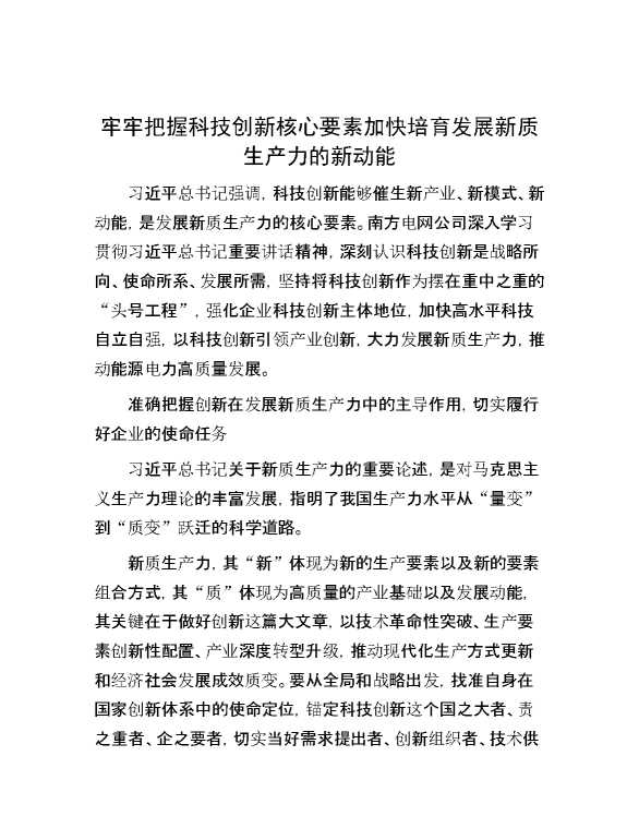 牢牢把握科技创新核心要素 加快培育发展新质生产力的新动能 2024-05-27 Word模板 95 购买前,请一定要先点击这里看看,欢迎持续关注,精彩模板每天推送 预览结束,本文件为word文档,一共7页,共2987字,请购买后,下载后查看 购买前,请一定要先点击这里看看,欢迎持续关注,精彩模板每天推送 资源下载下载价格29 RMBVIP免费升级VIP点击检测网盘有效后购买有任何充值和下载问题请加微信:xuexixuexi66 0 理论学习