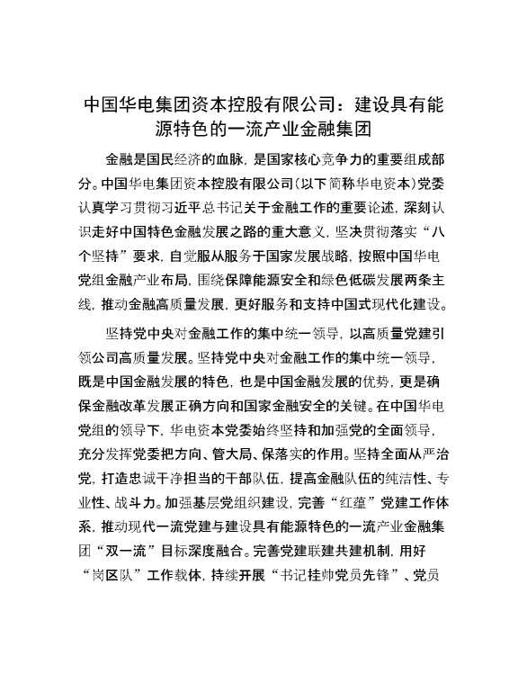 中国华电集团资本控股有限公司:建设具有能源特色的一流产业金融集团 2024-05-27 Word模板 92 购买前,请一定要先点击这里看看,欢迎持续关注,精彩模板每天推送 预览结束,本文件为word文档,一共6页,共2563字,请购买后,下载后查看 购买前,请一定要先点击这里看看,欢迎持续关注,精彩模板每天推送 资源下载下载价格29 RMBVIP免费升级VIP点击检测网盘有效后购买有任何充值和下载问题请加微信:xuexixuexi66 0 理论学习
