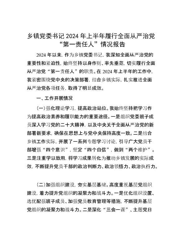 乡镇党委书记2024年上半年履行全面从严治党“第一责任人”情况报告 2024-06-03 Word模板 87 购买前,请一定要先点击这里看看,欢迎持续关注,精彩模板每天推送 预览结束,本文件为word文档,一共5页,共1993字,请购买后,下载后查看 购买前,请一定要先点击这里看看,欢迎持续关注,精彩模板每天推送 资源下载下载价格29 RMBVIP免费升级VIP点击检测网盘有效后购买有任何充值和下载问题请加微信:xuexixuexi66 0 总结汇报