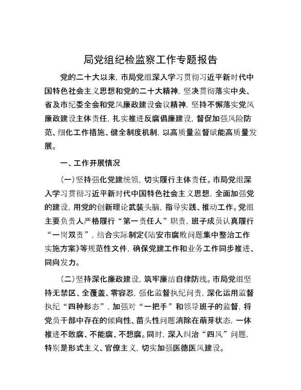 局党组纪检监察工作专题报告 2024-06-03 Word模板 85 购买前,请一定要先点击这里看看,欢迎持续关注,精彩模板每天推送 预览结束,本文件为word文档,一共5页,共2350字,请购买后,下载后查看 购买前,请一定要先点击这里看看,欢迎持续关注,精彩模板每天推送 资源下载下载价格29 RMBVIP免费升级VIP点击检测网盘有效后购买有任何充值和下载问题请加微信:xuexixuexi66 0 总结汇报