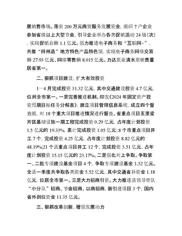 2024年县稳定经济增长工作情况汇报 2024-06-03 Word模板 90 购买前,请一定要先点击这里看看,欢迎持续关注,精彩模板每天推送 预览结束,本文件为word文档,一共5页,共2599字,请购买后,下载后查看 购买前,请一定要先点击这里看看,欢迎持续关注,精彩模板每天推送 资源下载下载价格29 RMBVIP免费升级VIP点击检测网盘有效后购买有任何充值和下载问题请加微信:xuexixuexi66 0 总结汇报