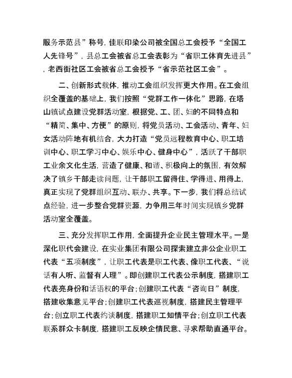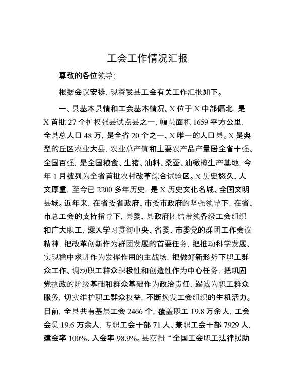 工会工作情况汇报 2024-06-03 Word模板 102 购买前,请一定要先点击这里看看,欢迎持续关注,精彩模板每天推送 预览结束,本文件为word文档,一共4页,共1955字,请购买后,下载后查看 购买前,请一定要先点击这里看看,欢迎持续关注,精彩模板每天推送 资源下载下载价格29 RMBVIP免费升级VIP点击检测网盘有效后购买有任何充值和下载问题请加微信:xuexixuexi66 0 总结汇报