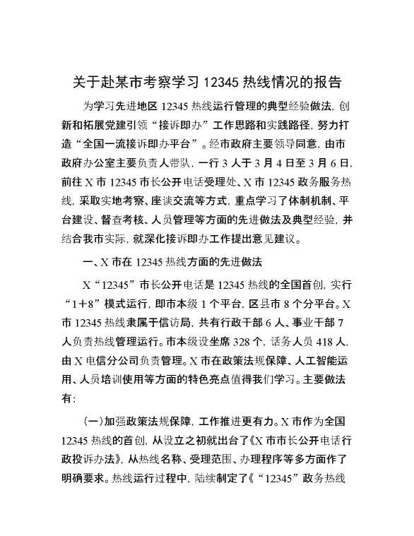 关于赴某市考察学习12345热线情况的报告 2024-06-03 Word模板 94 购买前,请一定要先点击这里看看,欢迎持续关注,精彩模板每天推送 预览结束,本文件为word文档,一共12页,共5879字,请购买后,下载后查看 购买前,请一定要先点击这里看看,欢迎持续关注,精彩模板每天推送 资源下载下载价格29 RMBVIP免费升级VIP点击检测网盘有效后购买有任何充值和下载问题请加微信:xuexixuexi66 0 总结汇报