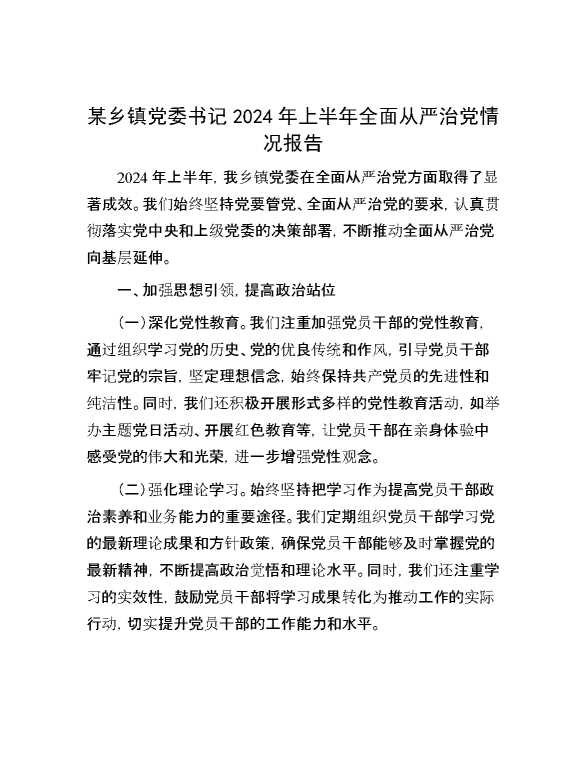 某乡镇党委书记2024年上半年全面从严治党情况报告 2024-06-03 Word模板 98 购买前,请一定要先点击这里看看,欢迎持续关注,精彩模板每天推送 预览结束,本文件为word文档,一共4页,共1767字,请购买后,下载后查看 购买前,请一定要先点击这里看看,欢迎持续关注,精彩模板每天推送 资源下载下载价格29 RMBVIP免费升级VIP点击检测网盘有效后购买有任何充值和下载问题请加微信:xuexixuexi66 0 总结汇报