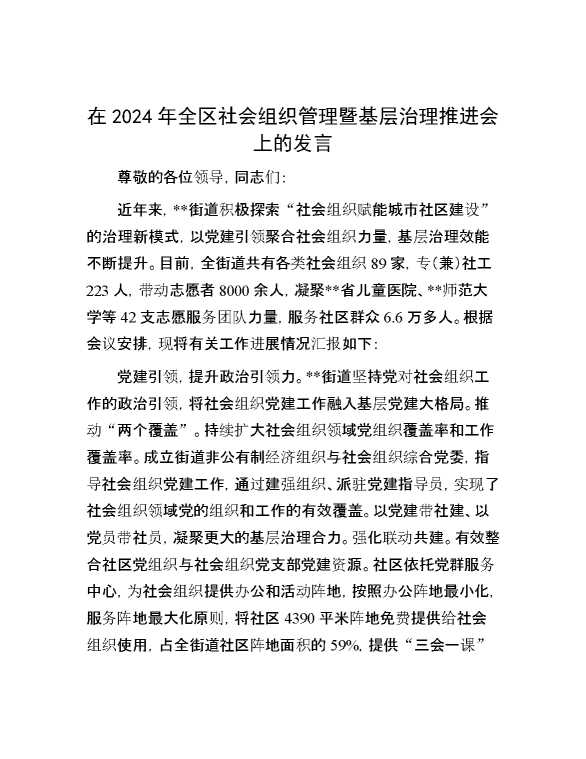 在2024年全区社会组织管理暨基层治理推进会上的发言 2024-06-03 Word模板 91 购买前,请一定要先点击这里看看,欢迎持续关注,精彩模板每天推送 预览结束,本文件为word文档,一共4页,共1596字,请购买后,下载后查看 购买前,请一定要先点击这里看看,欢迎持续关注,精彩模板每天推送 资源下载下载价格29 RMBVIP免费升级VIP点击检测网盘有效后购买有任何充值和下载问题请加微信:xuexixuexi66 0 演讲发言