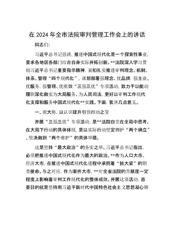 在2024年全市法院审判管理工作会上的讲话 2024-06-03 Word模板 91 购买前,请一定要先点击这里看看,欢迎持续关注,精彩模板每天推送 预览结束,本文件为word文档,一共9页,共3975字,请购买后,下载后查看 购买前,请一定要先点击这里看看,欢迎持续关注,精彩模板每天推送 资源下载下载价格29 RMBVIP免费升级VIP点击检测网盘有效后购买有任何充值和下载问题请加微信:xuexixuexi66 0 演讲发言