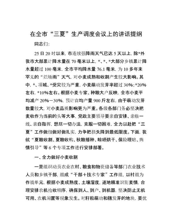 在全市“三夏”生产调度会议上的讲话提纲 2024-06-03 Word模板 91 购买前,请一定要先点击这里看看,欢迎持续关注,精彩模板每天推送 预览结束,本文件为word文档,一共7页,共3543字,请购买后,下载后查看 购买前,请一定要先点击这里看看,欢迎持续关注,精彩模板每天推送 资源下载下载价格29 RMBVIP免费升级VIP点击检测网盘有效后购买有任何充值和下载问题请加微信:xuexixuexi66 0 演讲发言