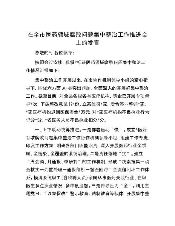 在全市医药领域腐败问题集中整治工作推进会上的发言 2024-06-03 Word模板 87 购买前,请一定要先点击这里看看,欢迎持续关注,精彩模板每天推送 预览结束,本文件为word文档,一共3页,共1134字,请购买后,下载后查看 购买前,请一定要先点击这里看看,欢迎持续关注,精彩模板每天推送 资源下载下载价格29 RMBVIP免费升级VIP点击检测网盘有效后购买有任何充值和下载问题请加微信:xuexixuexi66 0 演讲发言