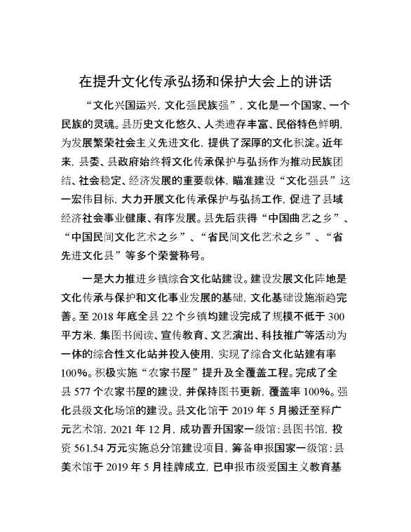 在提升文化传承弘扬和保护大会上的讲话 2024-06-03 Word模板 89 购买前,请一定要先点击这里看看,欢迎持续关注,精彩模板每天推送 预览结束,本文件为word文档,一共6页,共2660字,请购买后,下载后查看 购买前,请一定要先点击这里看看,欢迎持续关注,精彩模板每天推送 资源下载下载价格29 RMBVIP免费升级VIP点击检测网盘有效后购买有任何充值和下载问题请加微信:xuexixuexi66 0 演讲发言