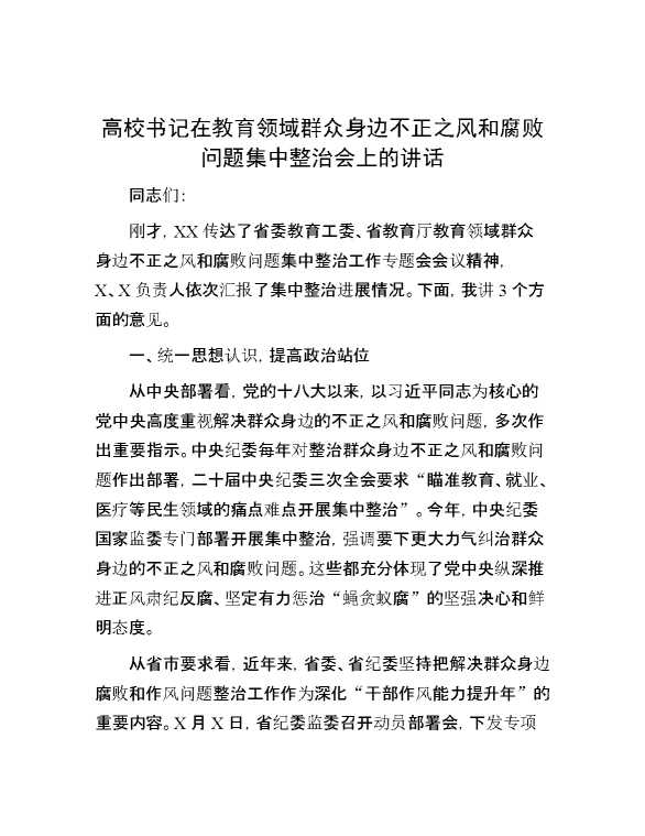 高校书记在教育领域群众身边不正之风和腐败问题集中整治会上的讲话 2024-06-03 Word模板 93 购买前,请一定要先点击这里看看,欢迎持续关注,精彩模板每天推送 预览结束,本文件为word文档,一共6页,共2431字,请购买后,下载后查看 购买前,请一定要先点击这里看看,欢迎持续关注,精彩模板每天推送 资源下载下载价格29 RMBVIP免费升级VIP点击检测网盘有效后购买有任何充值和下载问题请加微信:xuexixuexi66 0 演讲发言