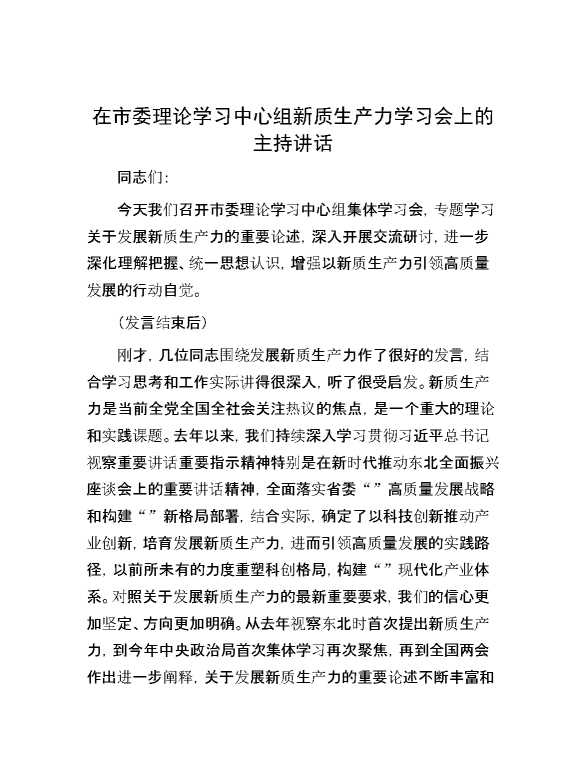 在市委理论学习中心组新质生产力学习会上的主持讲话 2024-06-03 Word模板 93 购买前,请一定要先点击这里看看,欢迎持续关注,精彩模板每天推送 预览结束,本文件为word文档,一共10页,共4640字,请购买后,下载后查看 购买前,请一定要先点击这里看看,欢迎持续关注,精彩模板每天推送 资源下载下载价格29 RMBVIP免费升级VIP点击检测网盘有效后购买有任何充值和下载问题请加微信:xuexixuexi66 0 演讲发言