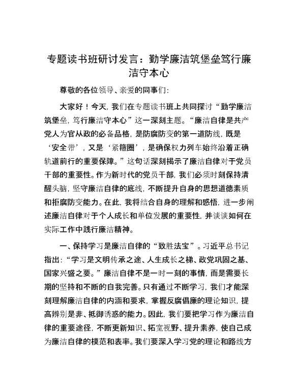 专题读书班研讨发言:勤学廉洁筑堡垒 笃行廉洁守本心 2024-06-03 Word模板 87 购买前,请一定要先点击这里看看,欢迎持续关注,精彩模板每天推送 预览结束,本文件为word文档,一共5页,共2107字,请购买后,下载后查看 购买前,请一定要先点击这里看看,欢迎持续关注,精彩模板每天推送 资源下载下载价格29 RMBVIP免费升级VIP点击检测网盘有效后购买有任何充值和下载问题请加微信:xuexixuexi66 0 演讲发言