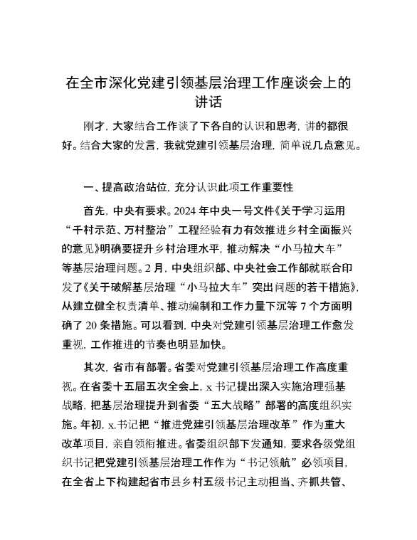 在全市深化党建引领基层治理工作座谈会上的讲话 2024-06-03 Word模板 92 购买前,请一定要先点击这里看看,欢迎持续关注,精彩模板每天推送 预览结束,本文件为word文档,一共5页,共2008字,请购买后,下载后查看 购买前,请一定要先点击这里看看,欢迎持续关注,精彩模板每天推送 资源下载下载价格29 RMBVIP免费升级VIP点击检测网盘有效后购买有任何充值和下载问题请加微信:xuexixuexi66 0 演讲发言