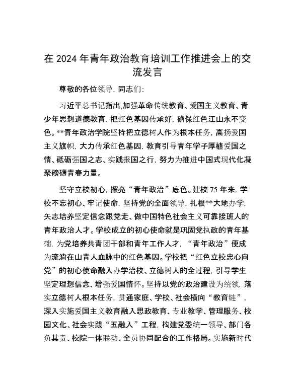 在2024年青年政治教育培训工作推进会上的交流发言 2024-06-03 Word模板 87 购买前,请一定要先点击这里看看,欢迎持续关注,精彩模板每天推送 预览结束,本文件为word文档,一共4页,共1868字,请购买后,下载后查看 购买前,请一定要先点击这里看看,欢迎持续关注,精彩模板每天推送 资源下载下载价格29 RMBVIP免费升级VIP点击检测网盘有效后购买有任何充值和下载问题请加微信:xuexixuexi66 0 演讲发言