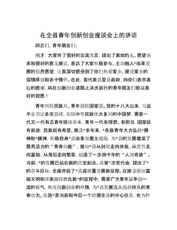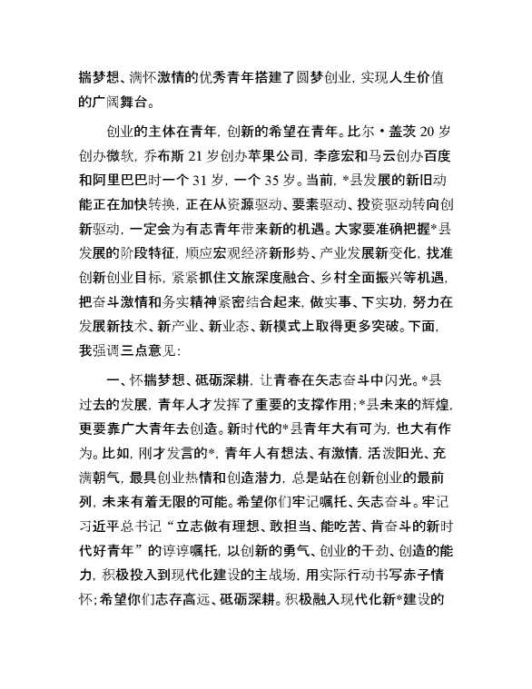 在全县青年创新创业座谈会上的讲话 2024-06-03 Word模板 96 购买前,请一定要先点击这里看看,欢迎持续关注,精彩模板每天推送 预览结束,本文件为word文档,一共4页,共1897字,请购买后,下载后查看 购买前,请一定要先点击这里看看,欢迎持续关注,精彩模板每天推送 资源下载下载价格29 RMBVIP免费升级VIP点击检测网盘有效后购买有任何充值和下载问题请加微信:xuexixuexi66 0 演讲发言
